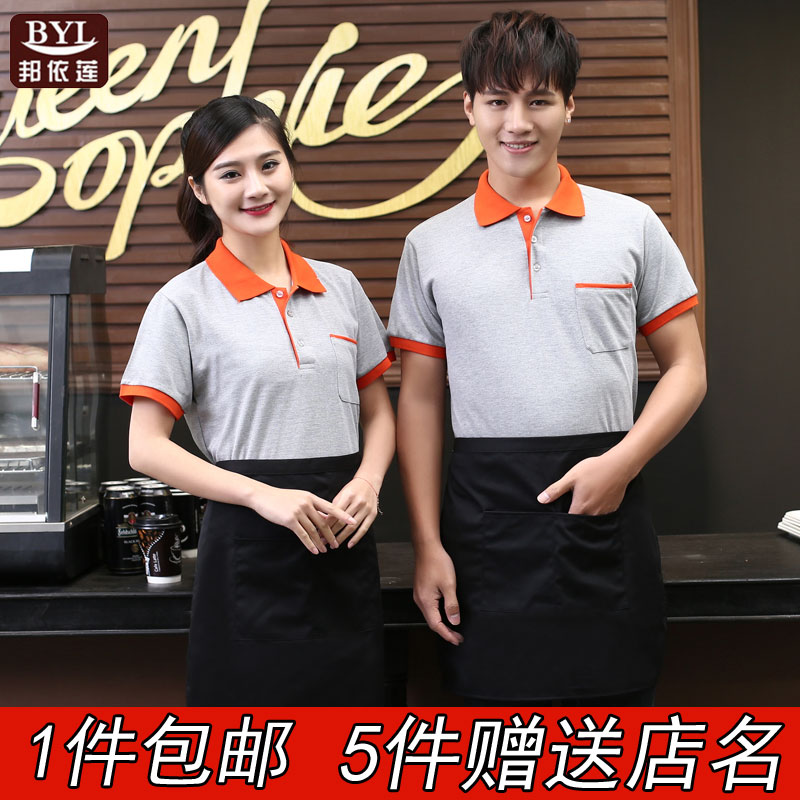 定制T恤短袖印logo夏季服务员工作服衣服火锅店餐饮饭店定做女男